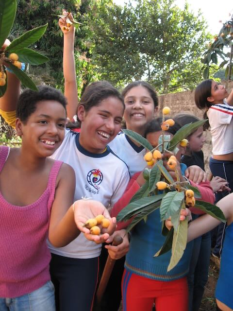 The children, the community and school grounds crew planted and the result has fed and nurtured the community now for twenty-seven years. The children named the garden “The Spirit of Nature”. Mosaics, a mural, totem poles and carved First Nations art honor the local culture and people’s participation in art. We won awards on a local, provincial and national level. People from all over the world have visited. Children can play and learn in beauty. Because of that garden’s success and all I learned with that community I won a grant from the Canadian International Development Agency in 2001 to go to Brazil, where I was born, to work in an economically challenged community to work with schools and a community center. Thus began A Child’s Garden of Peace.