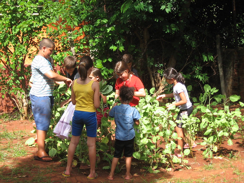 This project was a response to food insecurity and a lack of environmental education in an economically challenged neighborhood in a city of 67,000 people in southern Brazil. Participatory planning with the Centro Sul neighborhood along the Itaquarinchim River resulted in a daily program at the community center in environmental activities: Developing a food garden, trash separation, recycling, and healthy mini-meals. School in Brazil is only ½ day, so we had about 20 children each morning and 20 in the afternoon. I also incorporated the elementary school next door to the community center in garden making on their grounds. Our first task before we could do anything else was a community clean-up. With the adolescents, we formed a Green Team. Those youth were our summer camp counselors. A private school collaborated with us and invited us to use their semi-rural land and pool for the camp. We had field trips by bus to organic farms and a historic site, São Miguel, Iguaçu National Park, and an environmental school, Bagé Permaculture School.