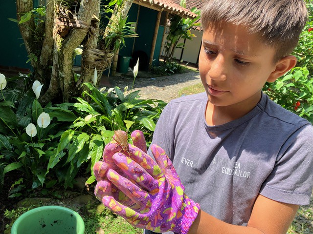 Illène founded Sembrando Semillas in April 2023 for the children who live in Amanecer and their neighbors near La Tebaida in the Quindio department in Colombia. This effort was a collaboration with the Guerrand Hermès Foundation for Peace and Susila Dharma International. The inspiration came from Amanecer’s lush tropical beauty, the birds that sing all day, and children who did not have access to activities oriented towards this beautiful environment.